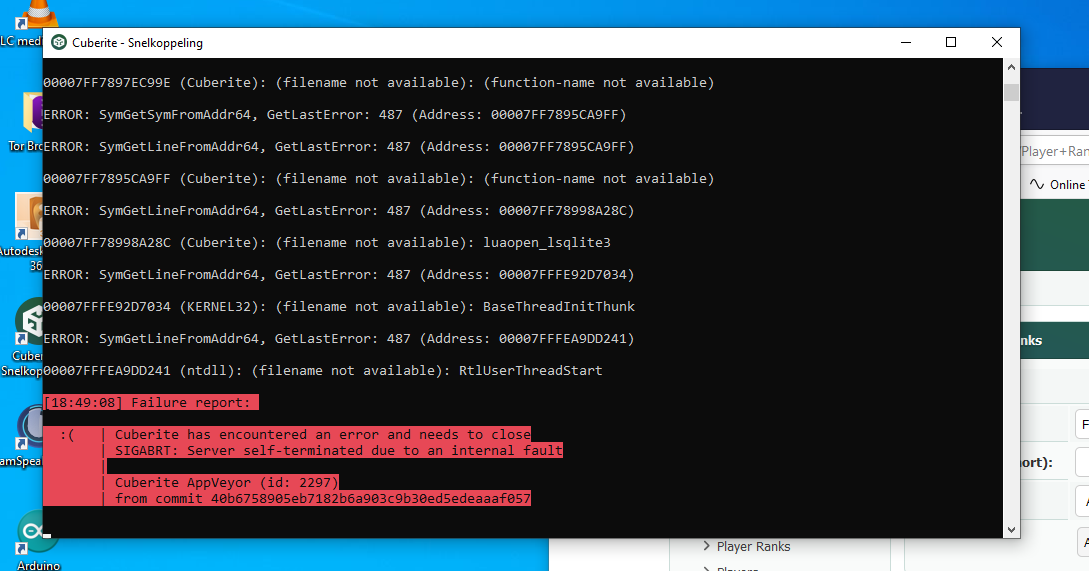 | Cuberite has encountered an error and needs to close
