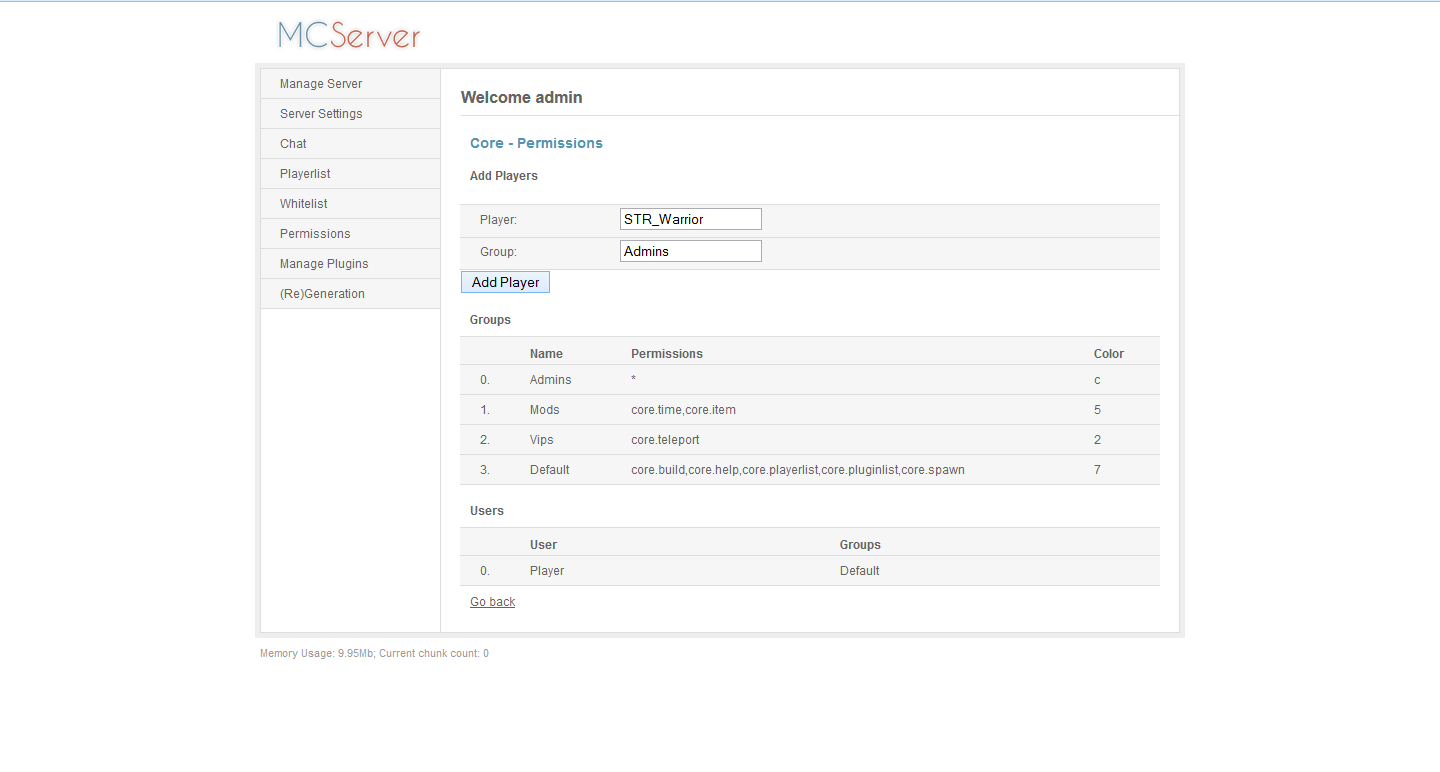 - You can add players to groups with the webadmin. without the player have to relog first