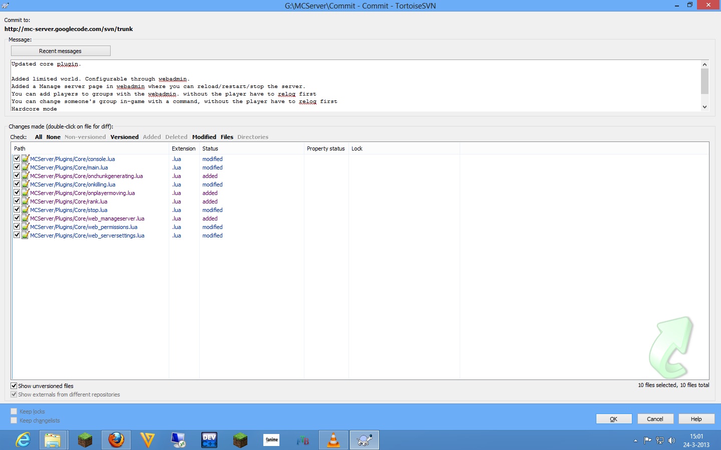 omg TortoiseSVN is frustrating. i want to commit my changes to the core but it wants to commit it to http://mc-server.googlecode.com/svn/trunk/ without my allowing to change it >.<